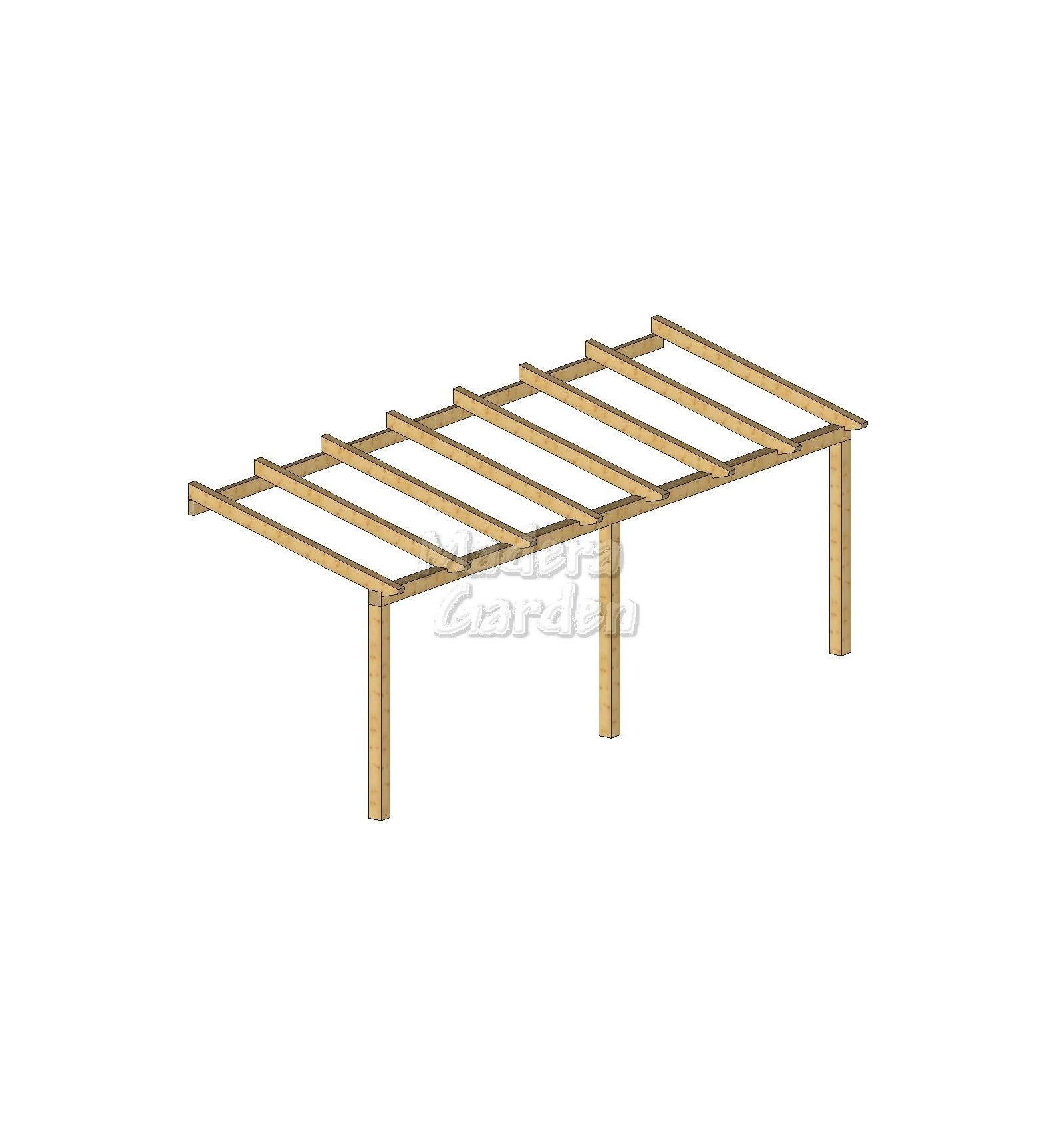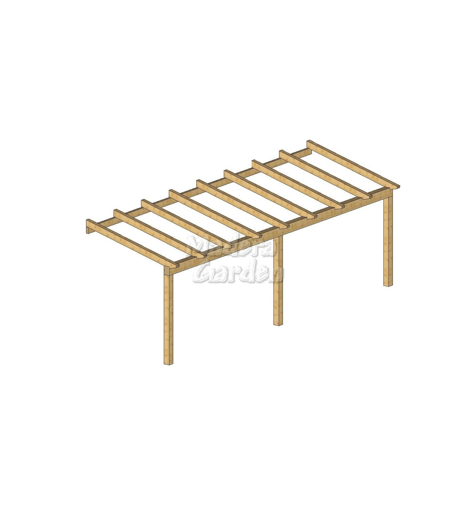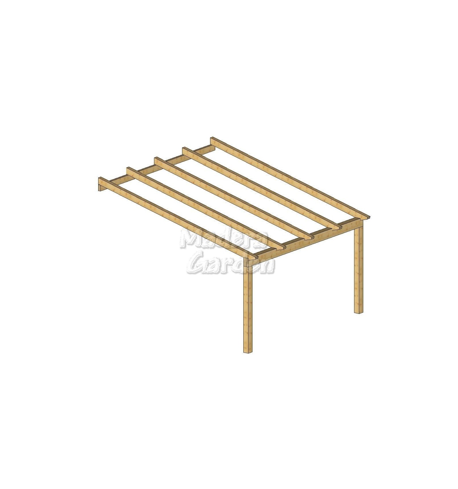 IVA incluídoIntroduciendo sus medidas, encontrará el "Kit" de pérgola de madera adosada a fachada, listo para que se lo monte usted mismo.