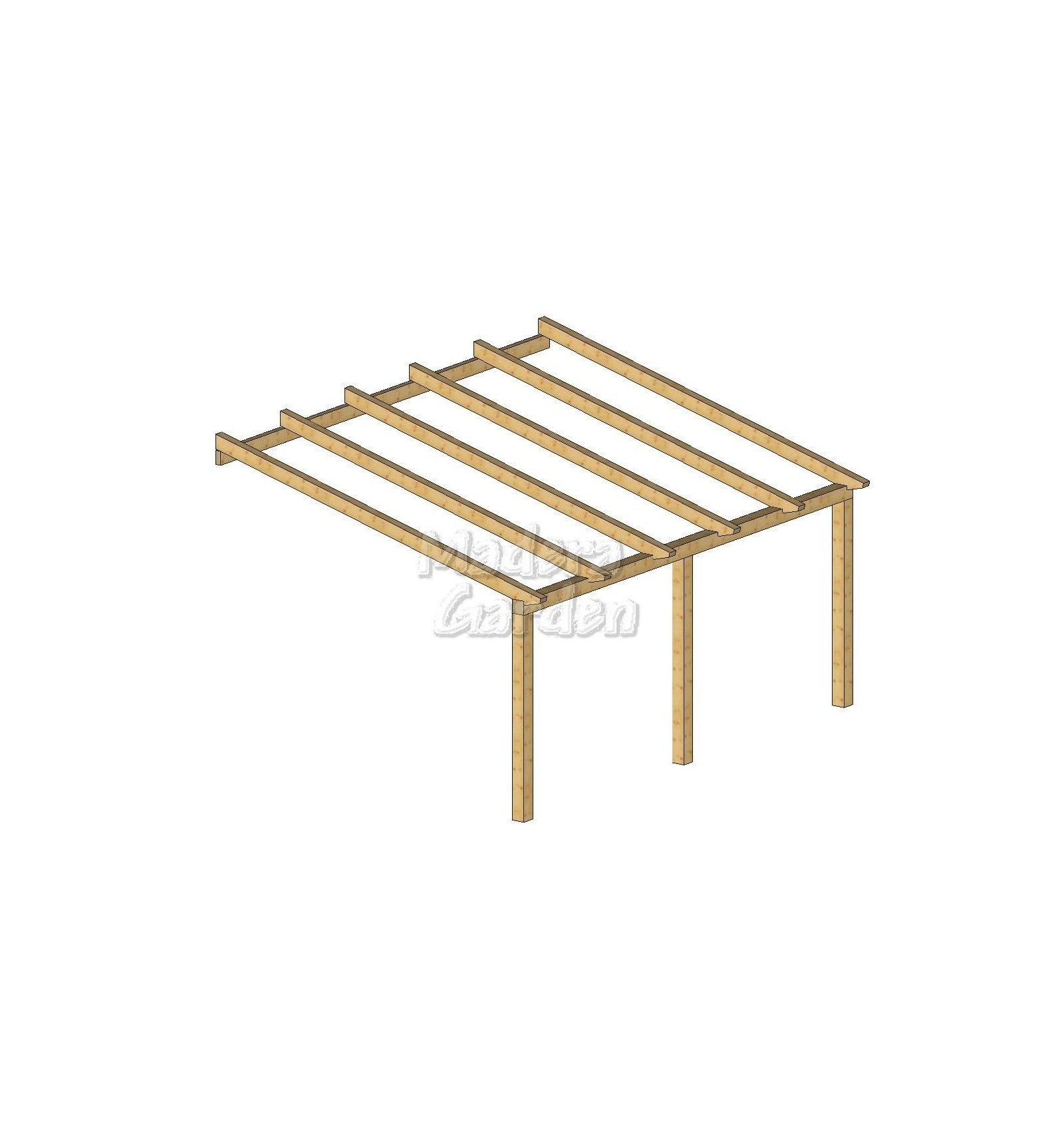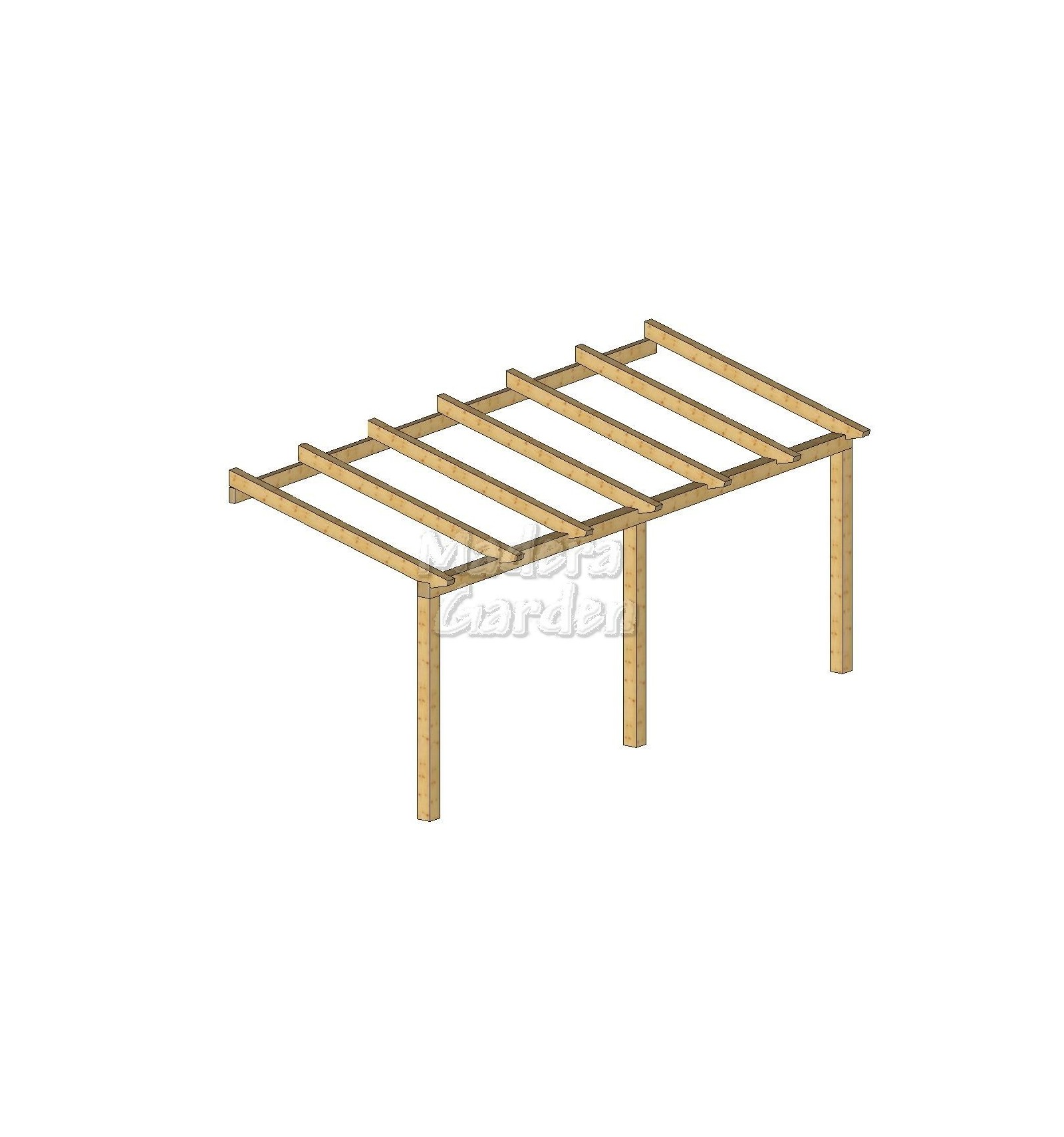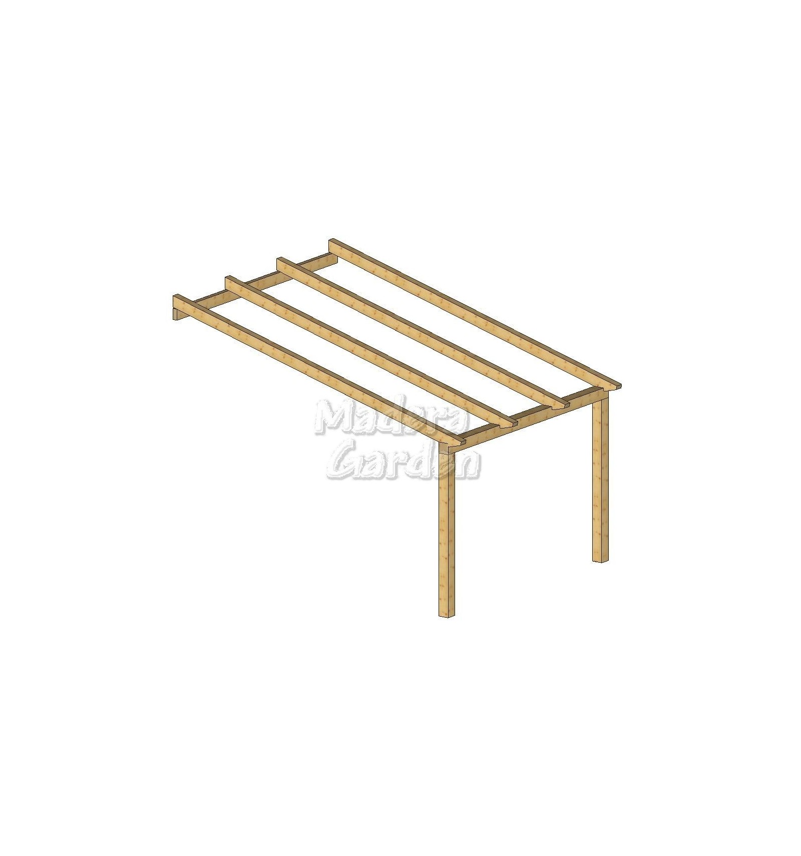 IVA incluídoIntroduciendo sus medidas, encontrará el "Kit" de pérgola de madera adosada a fachada, listo para que se lo monte usted mismo.